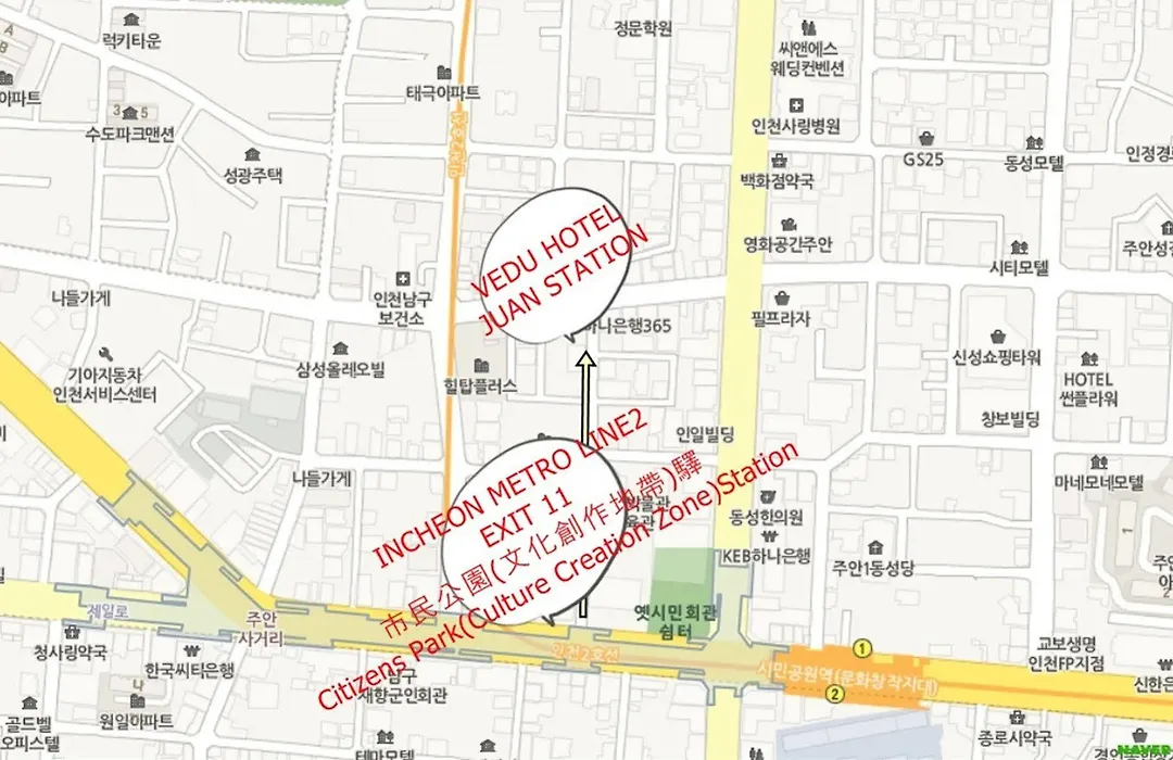ホテルはインチョン広域市に位置し、市民公園地下鉄駅かなり近くです。 また、インチョン広域市にあるホテルから徒歩で25分のロッテ百貨店 仁川店があります。 インチョン広域市のVedu Hotel Herb水道局山タルトンネ博物館から4.1キロメートル離れた所にあります。 宿泊は、金浦国際空港から25で、Jc회관バス停少し離れたの場所にあります。
